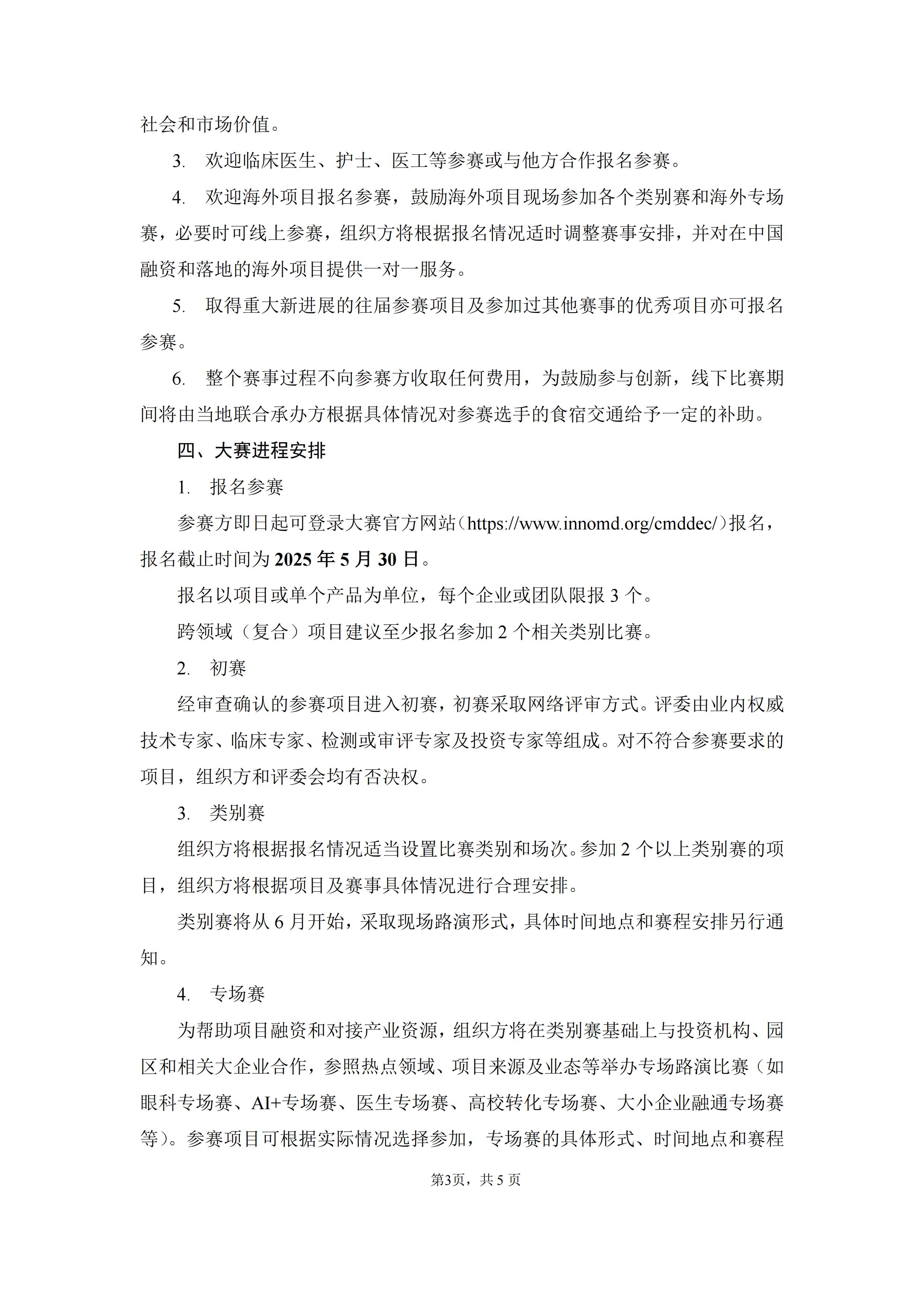 参赛方即日起可登录大赛官方网站(医疗器械创新网网://suyouqy.com/cmddec/)报名,报名截止时间为2025年5月30日。